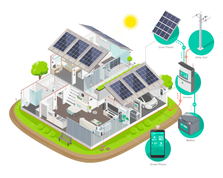 Solar panels turn sunlight into electricity using special cells. These cells create direct current (DC) electricity when the sun hits them. Then, an inverter changes this DC electricity into the alternating current (AC) electricity that powers your home.